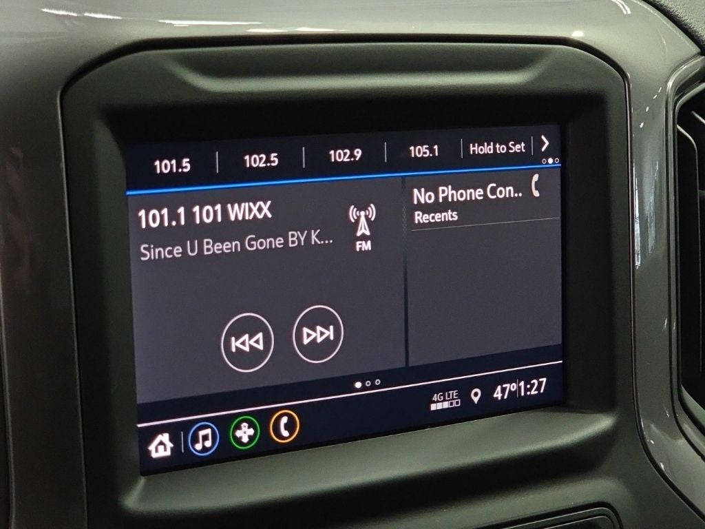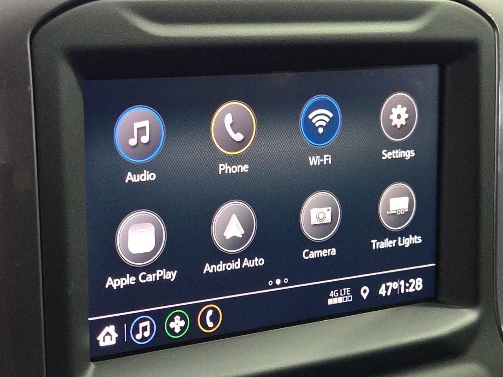 - Audio system, Chevrolet Infotainment 3 system 7" diagonal color touchscreen, AM/FM stereo. Additional features for compatible phones include: Bluetooth® audio streaming for 2 active devices, voice command pass-through to phone, wired Apple CarPlay and Android Auto capable.